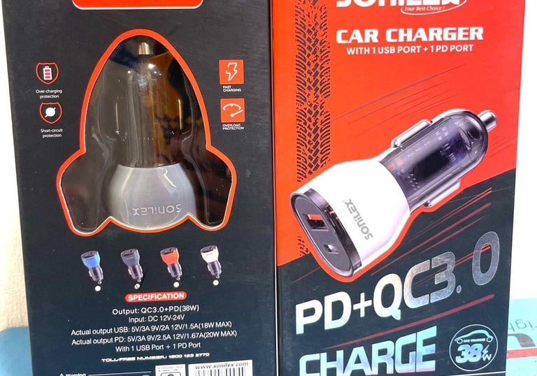 Sonilex Car Charger with 1 USB Port and 1 PD Port (SL-CC50)